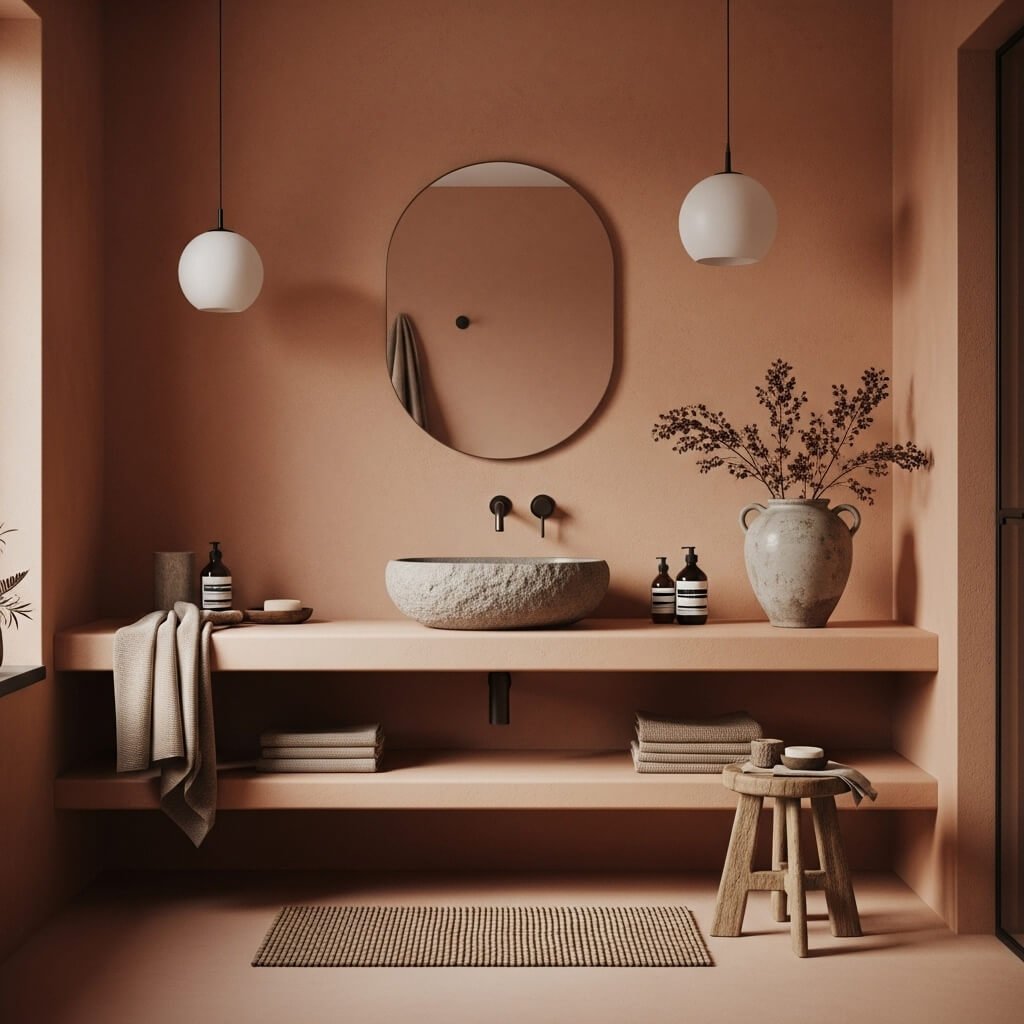 5. Earth-Tone Minimalist Bathroom