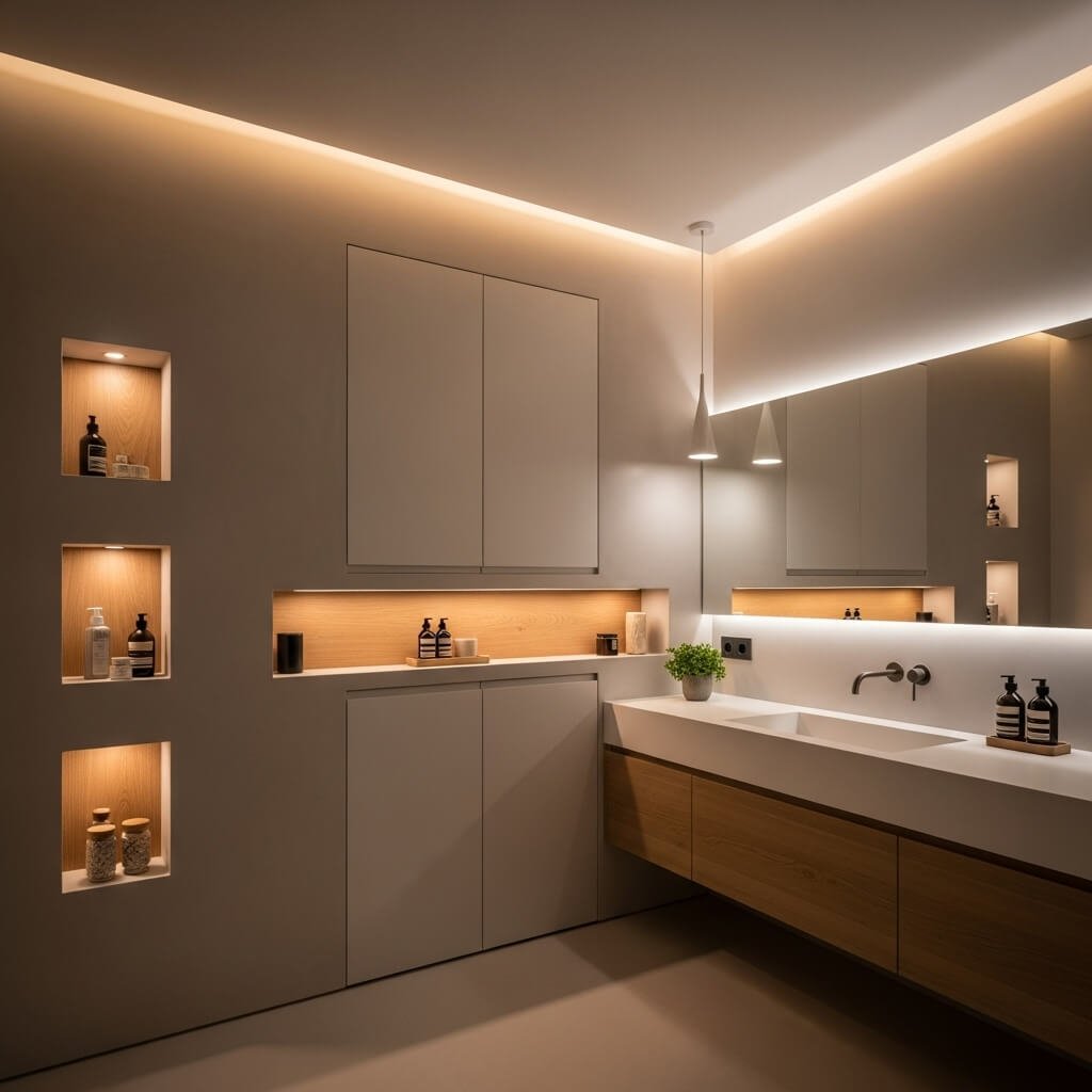 12. Minimalist Bathroom with Built-In Storage