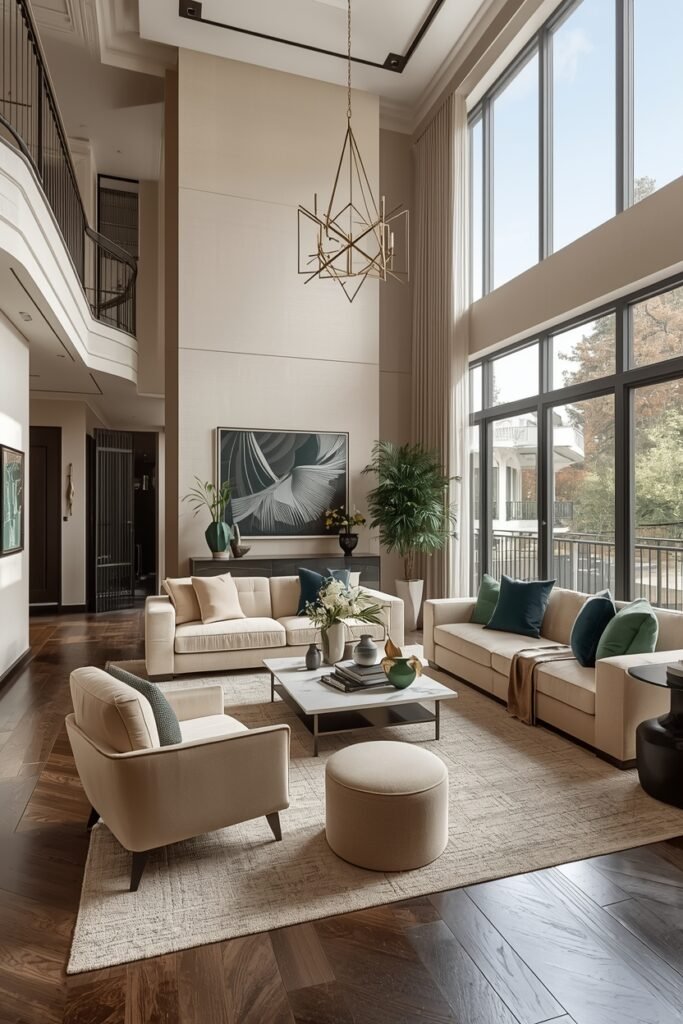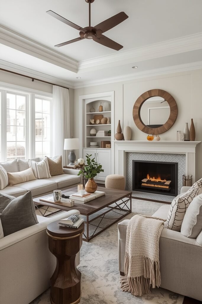 Neutral colors are one of the best ways to create elegant boho living room ideas that feel calm and timeless. Start with a soft palette like beige, cream, and light brown to build a relaxing foundation. A comfortable linen sofa paired with woven cushions and a textured rug instantly adds warmth and character to the space. Natural materials such as rattan chairs, wooden coffee tables, and jute rugs help enhance the boho aesthetic while keeping the room elegant and balanced. Add a few decorative pieces like ceramic vases, pampas grass, or minimal wall art to maintain a clean and stylish look. Large windows and soft lighting can make the room feel bright and airy. This style works perfectly for homeowners who want a modern boho living room decor that looks simple yet sophisticated while maintaining a cozy and welcoming atmosphere.